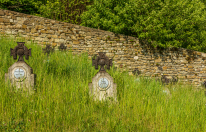 Cmentarz wojenny nr 190 więcej zdjęć (11) Architekt: Heinrich Scholz Zbudowano: 1915 Zabytek: A-467/M z 16.04.2009 Zaprojektowany przez Heinricha Scholza jako odrębna kwatera na cmentarzu parafialnym. Znajduje się na zboczu i ma kształt wydłużonego prostokąta. Ogrodzenie tworzy kamienny mur nakryty betonowym daszkiem. Wejście przez niską, metalową, dwuskrzydłową furtkę. W naprzeciwległym do furtki boku cmentarza w wysuniętym na zewnątrz prostokąta trapezowym placyku główny pomnik cmentarza. Ma postać prostokątnej, betonowej ściany pomnikowej z dużą płaskorzeźbą ukrzyżowanego Chrystusa. W dolnej części ściany napis w języku niemieckim, w tłumaczeniu na język polski oznaczający: „Wrota śmierci prowadzą wiernych w nieśmiertelność. Szczęśliwi żegnają nas, dzięki których ofierze żyją”. Poniżej tego pomnika na środku cmentarza znajduje się odrębna mogiła z betonowym obrzeżem i dużą trapezową stelą zwieńczoną łacińskim krzyżem. Umieszczona na niej tablica inskrypcyjna informuje, że jest to mogiła 11 żołnierzy o nieznanych nazwiskach, którzy polegli we wrześniu 1939 r. w walce z hitlerowskim najeźdźcą. Groby żołnierzy poległych w I wojnie światowej w trzech długich, równoległych rzędach. Nagrobki w postaci betonowych cokołów z tabliczkami imiennymi i żeliwnymi krzyżami trzech rodzajów: jednoramienne krzyże maltańskie z wieńcem laurowym i datą 1914, dwuramienne krzyże lotaryńskie z wieńcem laurowym i datą 1914, wyższe, jednoramienne krzyże łacińskie z okrągłą, zębatą glorią i tabliczką imienną Polegli W 20 grobach zbiorowych i 76 pojedynczych pochowano tu 114 żołnierzy armii austro-węgierskiej i 16 żołnierzy armii rosyjskiej. Źródło: Cmentarz parafialny więcej zdjęć (3) |