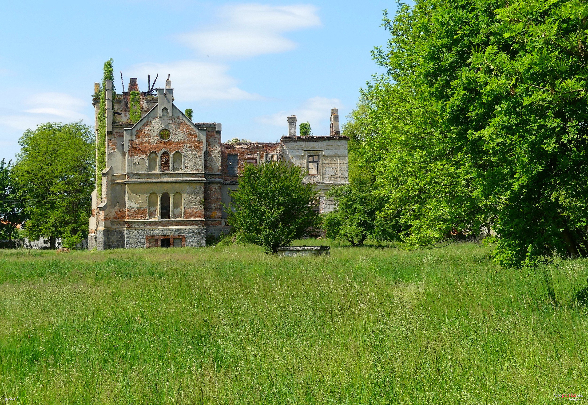 0 pobrań 408 odsłon 6 średnia ocen Poprzednie i następne zdjęcia † jaxan Obiekty widoczne na zdjęciu Pałac więcej zdjęć (103) Zbudowano: 1874 Dawniej: Schloss Zabytek: 651/W z 21.12.1990 Eklektyczny pałac w Gałowie wybudowany został pod koniec XIX wieku na miejscu wcześniejszego szesnastowiecznego założenia należącego niegdyś do rodziny von Seidlitz. W czasie wojny trzydziestoletniej dawny zamek został częściowo zniszczony. Był to budynek wzniesiony na planie zbliżonym do podkowy z jednym krótszym ramieniem, z wieżą w północno-wschodnim narożu oraz otwartym dziedzińcem wewnętrznym. Najprawdopodobniej w XIX wieku dobudowano do niego skrzydło od strony zachodniej, likwidując w ten sposób wewnętrzny dziedziniec. Bryłę wzbogacono również o narożne ganki, przybudówki, zmodernizowano także wnętrze. Elewacja pałacu w wyniku wielu modernizacji zawiera zarówno cechy charakterystyczne dla gotyku, renesansu jak i klasycyzmu. Przed wejściem znajduje się dość długi most nad suchą fosą. Obok budynku usytuowano dwie oficyny. Całość otacza park krajobrazowy przechodzący w lasy nadrzeczne. Na podst. dworypalace.travel.pl |