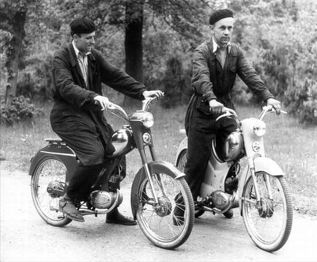 Lata 1960-1962 , Motorowery "ryś" na zakładowych uliczkach Zakładów Metalowych .Skomentuj zdjęcie