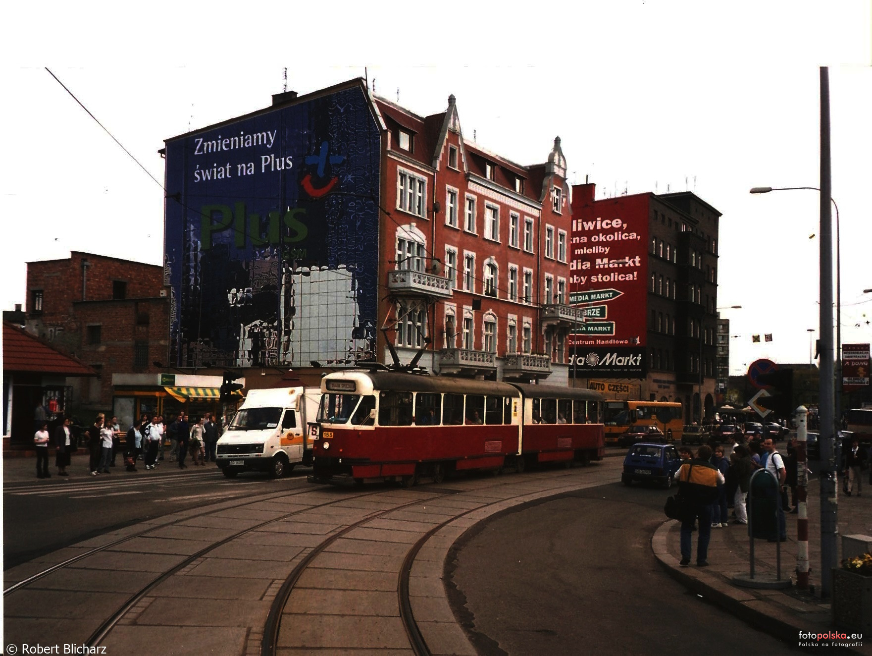 30 kwietnia 2001 , Gliwice ul. Bohaterów Getta Warszawskiego. Wagony typu 102Na znajdowały się na stanie zajezdni w Gliwicach do 26.04.1985 r. Po tym okresie pojawiające się "stodwójki" wykonywały tylko przejazdy okolicznościowe lub szkoleniowe.Skomentuj zdjęcie |