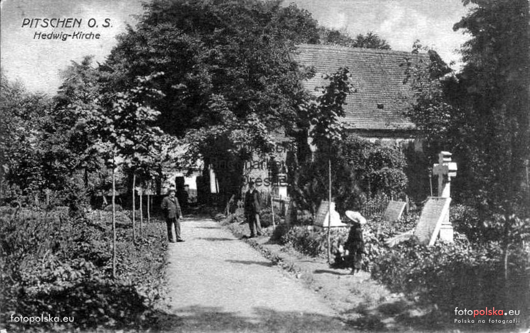 Lata 1915-1920 , Stary cmentarz w Byczynie, w tle kaplica św. Jadwigi.Skomentuj zdjęcie |