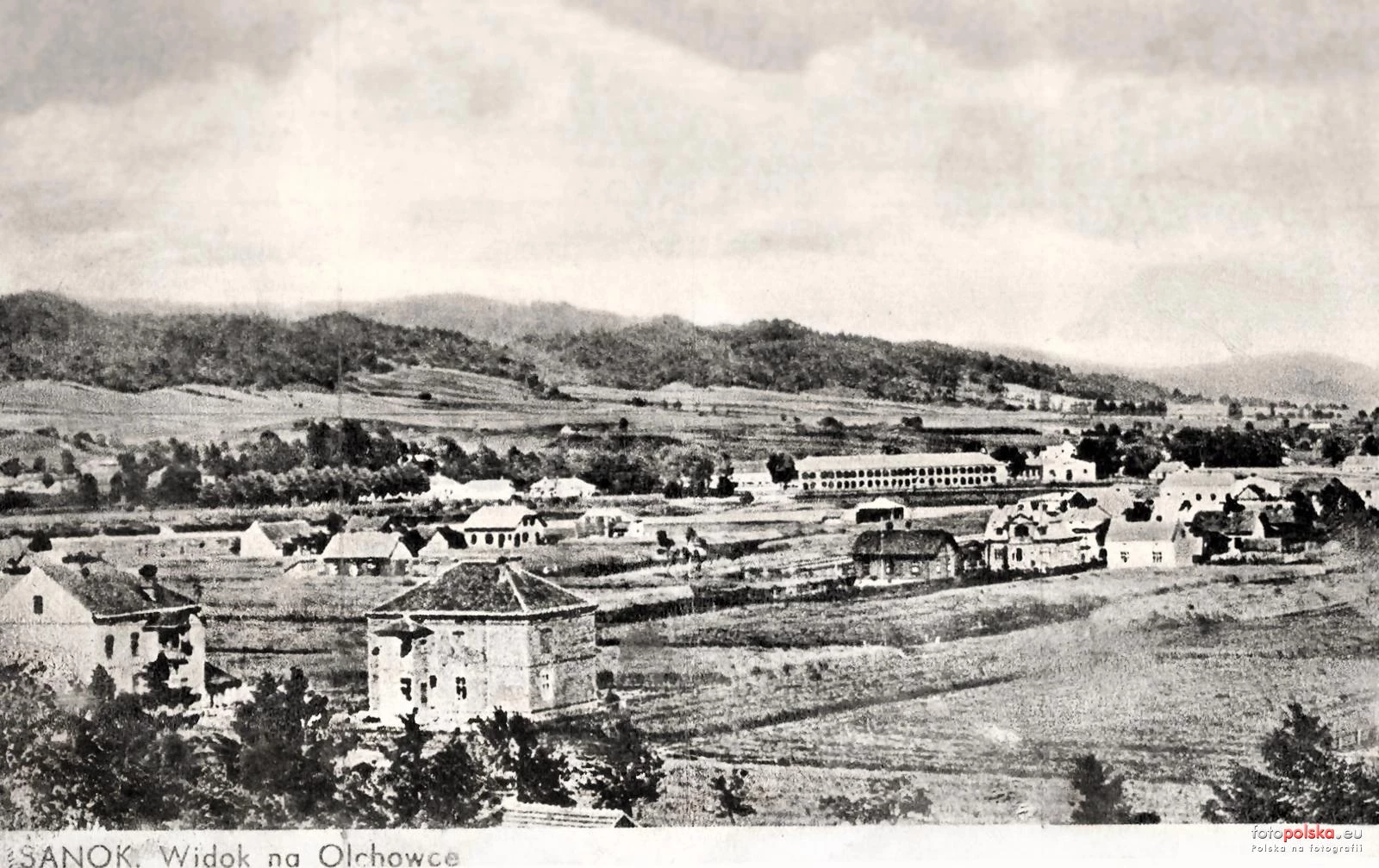 Lata 1920-1930 , Panorama dzielnicy Olchowce, fragment zabudowy ulicy Błonie, widoczne budynki 10 i 14, w głębi dawne koszary - obecnie użytkowane przez Wojskową Komendę Uzupełnień.Skomentuj zdjęcie