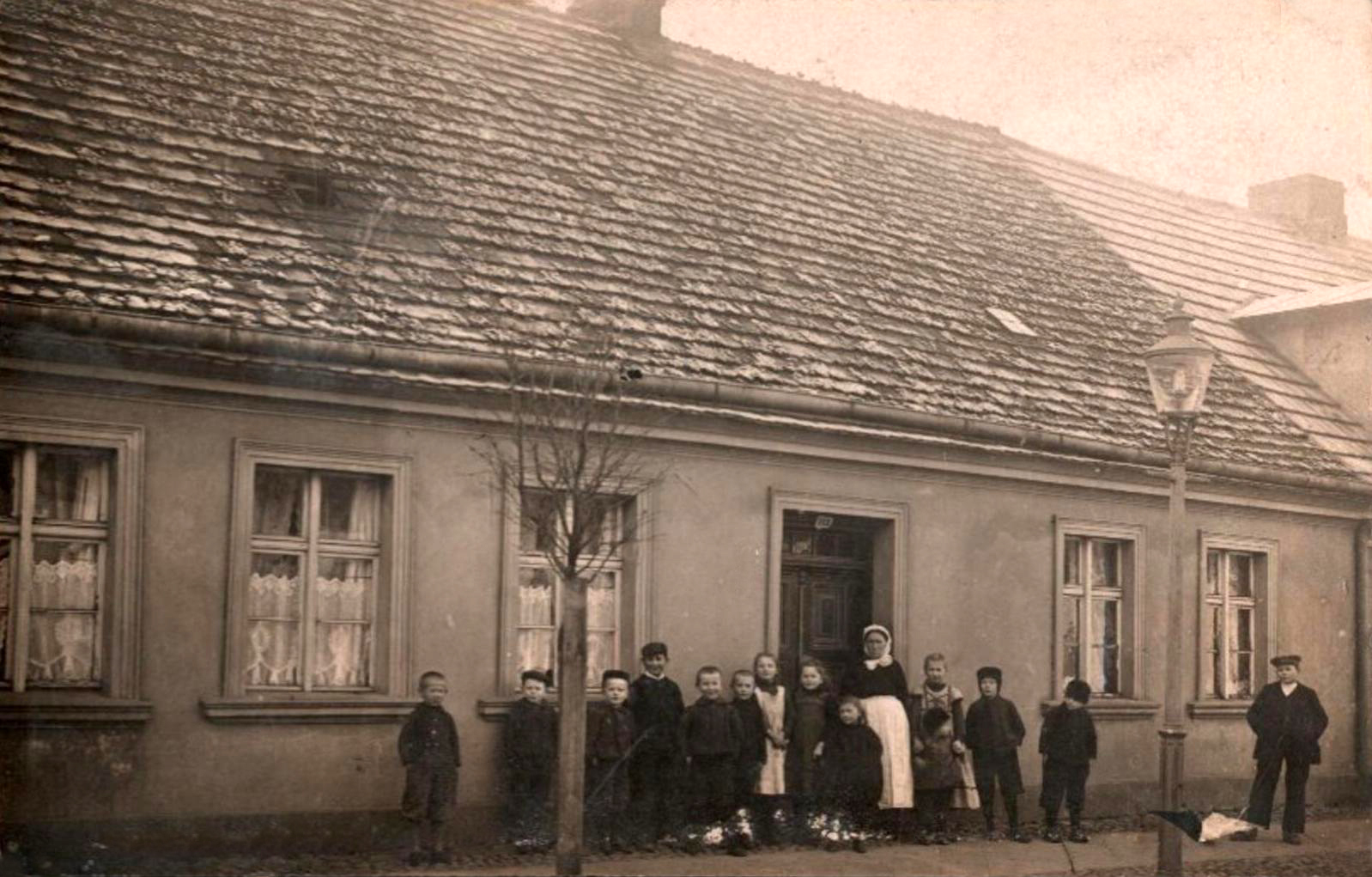 1910 , Budynek (wówczas sierociniec ?) przy ulicy Chrobrego, pocztówka nadana z Sierakowa 19.10.1910 r.,Skomentuj zdjęcie