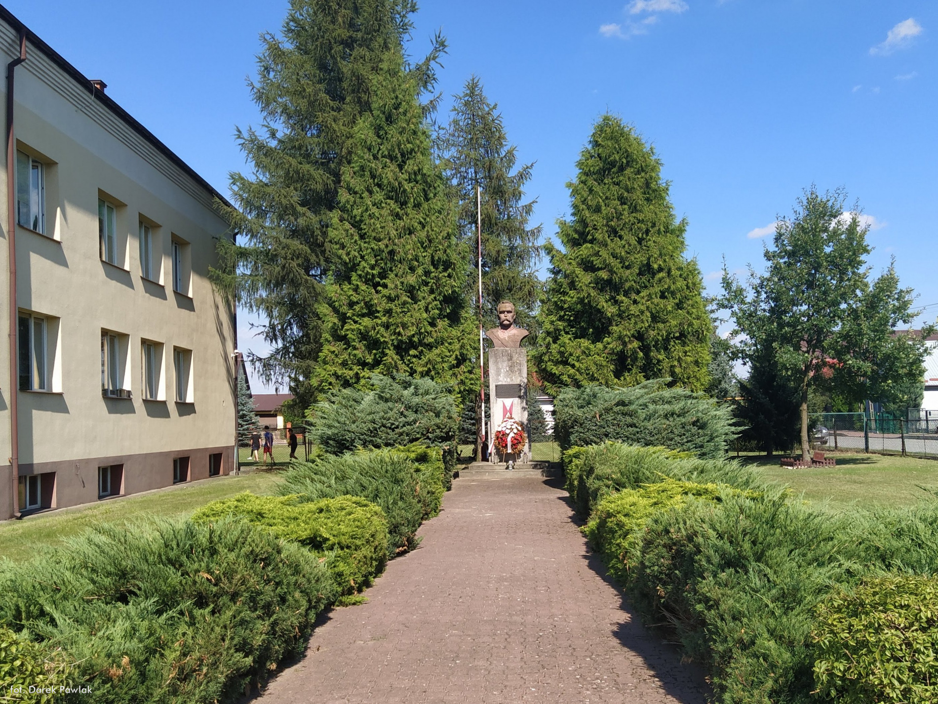 Popiersie Piłsudskiego więcej zdjęć (3) Zbudowano: 1935 Pierwotnie pomnik miał powstać w 20-lecie odzyskania niepodległości i odsłonięty 11 listopada 1938 roku. Miał też upamiętniać pobyt Piłsudskiego w związku z manewrem znad Wieprza w Bitwie Warszawskiej 1920 roku. Śmierć Marszałka spowodowała przyspieszenie i ostatecznie do odsłonięcia popiersia doszło 15 sierpnia 1935 roku w 15 rocznicę bitwy. Popiersie marszałka umieszczono na wysokim cokole z emblematami OSP w Bobrownikach, która miała największe zasługi w jego powstaniu. Pomnik przetrwał II WŚ. Hitler darzył szczególnym sentymentem Marszałka i uważał, że nigdy nie doszło by do wojny z Polską, gdyby żył. Przetrwał nawet pierwsze lata rządów komunistów. Dopiero w 1949 anonimowi sprawcy wysadzili popiersie. Uszkodzony cokół został na placu przy szkole, aż do czasów, kiedy znów można było pomyśleć o odnowieniu pomnika. Nastąpiło to 11 listopada 1989 roku. Dzięki zebranym funduszom ze sprzedaży cegiełek odremontowano cokół i wykonano popiersie ze specjalnej masy plastycznej. Ustawiony w centralnym miejscu, na rynku, jest miejscem uroczystości w święta państwowe. Rynek więcej zdjęć (12) |