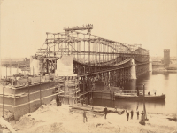 Budowę mostu kolejowego dla linii Królewiec-Berlin rozpoczęto 30.04.1888 a zakończono 25.10.1891r.