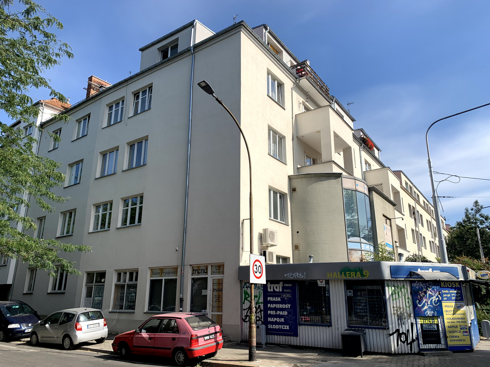 20 września 2020 , Narożnik Hallera 9-Krakusa 8. Widoczny kiosk oraz salon fryzjerski "Trend".Skomentuj zdjęcie |