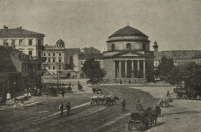 Lata 1886-1887 , Pierwotny wygląd kościoła św. Aleksandra. Kamienica Fuchsa już wybudowana, natomiast kościół jeszcze nie jest przebudowywany, czyli zostaje wąski margines 1886-1887. Z książki: „Władcy Rosji w Warszawie”.Skomentuj zdjęcie |
