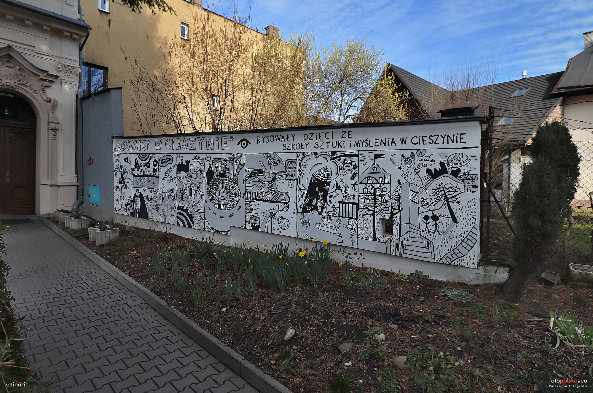 9 marca 2020 , Ogólny widok na mural "Kosmici w Cieszynie" który się znajduje przy wejśczu do przedszkola.Skomentuj zdjęcie |