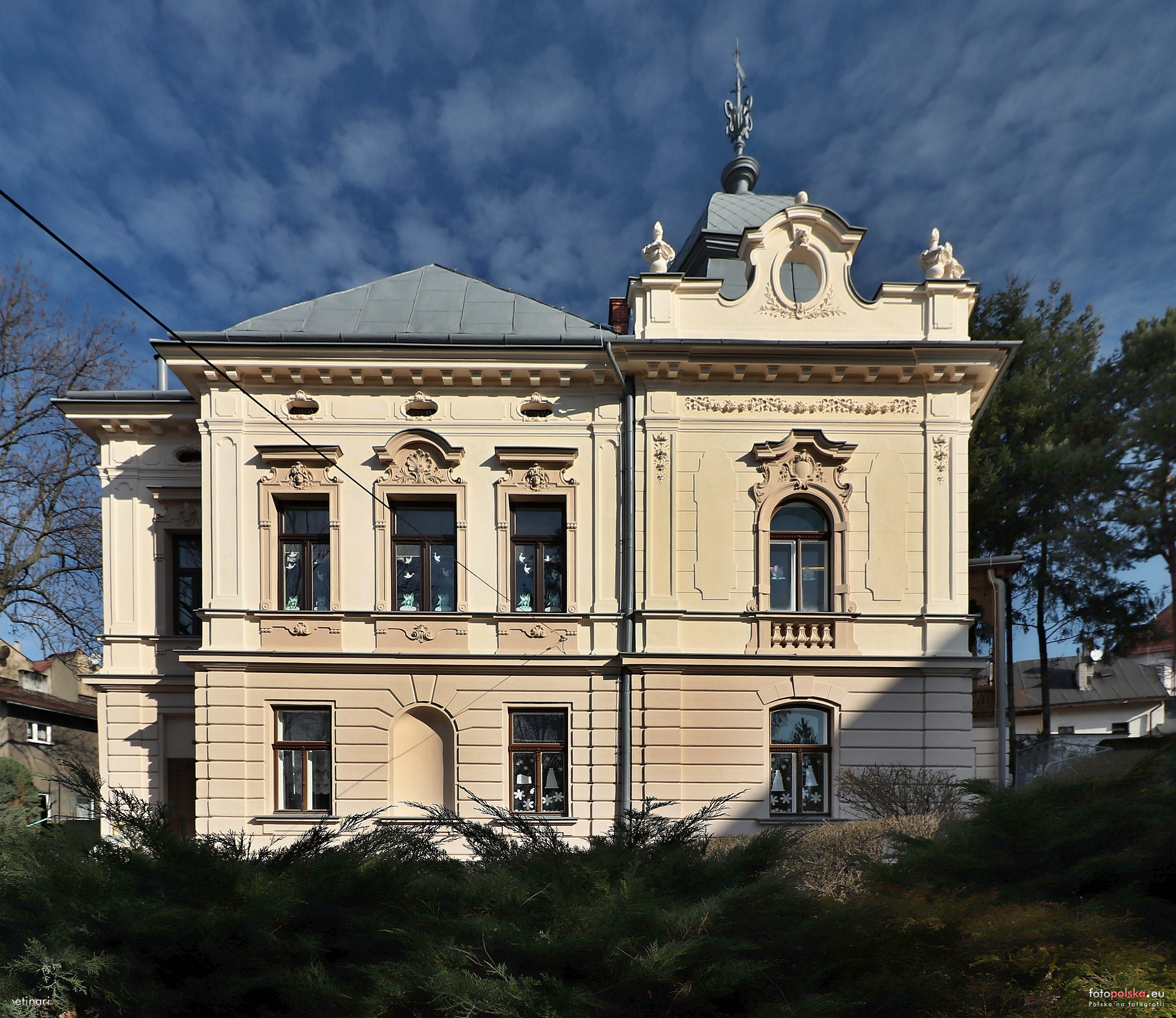 1 pobranie 842 odsłony 6 średnia ocen Poprzednie i następne zdjęcia vetinari Obiekty widoczne na zdjęciu Katolickie Przedszkole im. Dzieciątka Jezus więcej zdjęć (42) Architekt: Albert Dostal Zbudowano: 1899 Dawniej: Willa Helm Zabytek: A-506/2018 Willa w stylu eklektycznym z elementami neobarokowymi. Wybudowana w 1899 roku wg projektu Alberta Dostala dla Fryderyka Helm. Kolejnymi właśicielami po 1909 roku byli Karo li Olga Sussmann. W okresie międzywojnia przekazano budynek na rzecz katolickiej Rodziny Sierocej. ul. Pokoju więcej zdjęć (106) Dawniej: Schulweg |