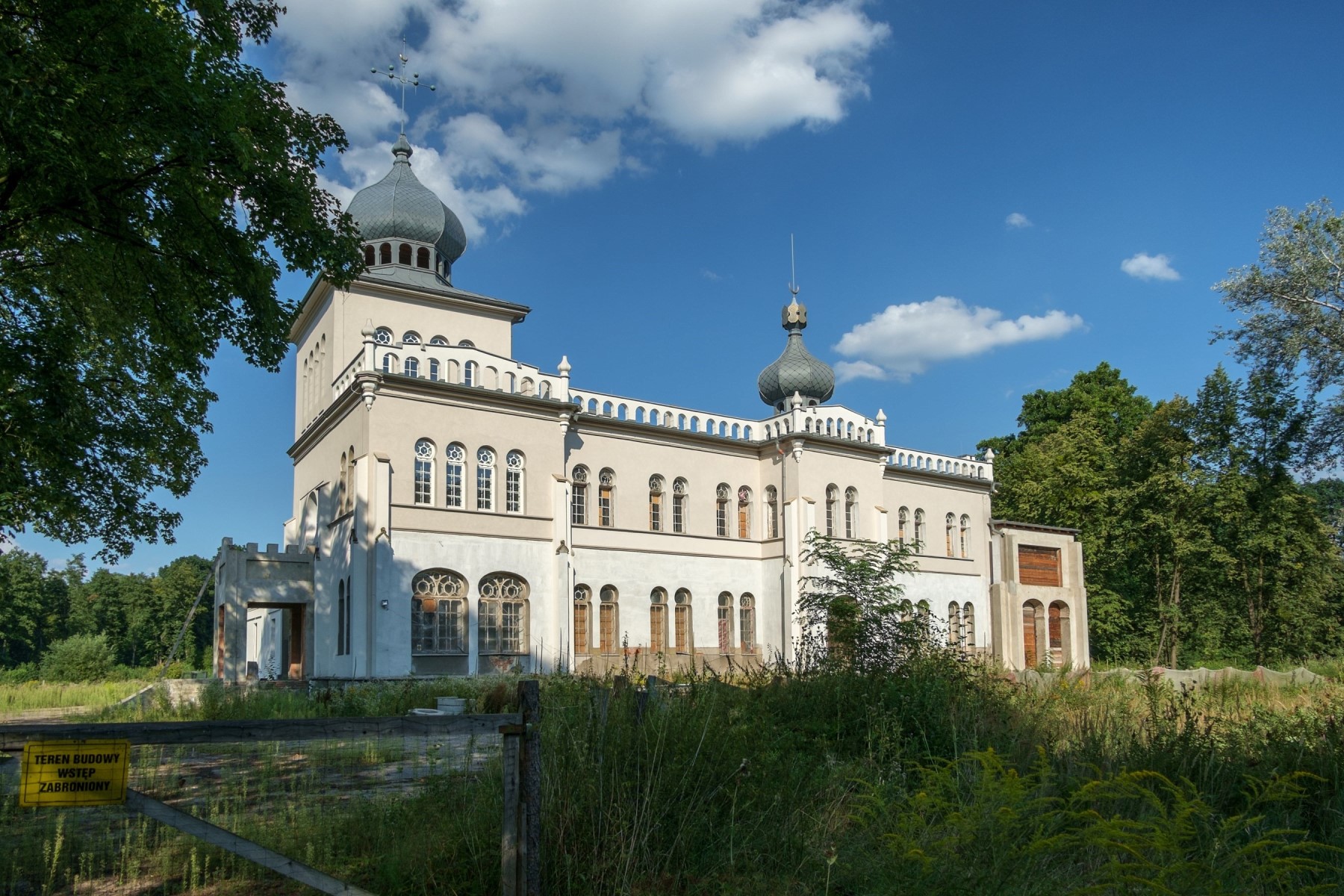 2 pobrania 749 odsłon 6 średnia ocen Poprzednie i następne zdjęcia veeckee Obiekty widoczne na zdjęciu Pałac, Muzeum rodu Rudzińskich więcej zdjęć (15) Pałac w stylu mauretańskim w Polsce położony w Osieku (województwo małopolskie). Obecnie we wnętrzach pałacu znajduje się niewielkie prywatne muzeum rodu Rudzińskich (historia rodu i posiadłości). Pałac jest budynkiem dwukondygnacyjnym (drugą kondygnację dobudowano w połowie XIX wieku), posiada dwie wieże kryte cebulastymi hełmami. Niegdyś wejścia do pałacu broniły dwa potężne posągi gryfów. Ściany i sufity wnętrza są pokryte w całości misternymi malowidłami i mozaikami utrzymanymi w tonacji błękitno-białej. Wśród ozdobnych dekoracji przeważają motywy geometryczne i roślinne. W pałacu zachowały się napisy w języku arabskim, między innymi Allah Akbar (Bóg Wszechmocny). W sali balowej, zwanej Salą Mauretańską, znajdują się arabeski i wejścia z zamkniętym łukiem ozdobione motywem muszli. Pałac otoczony jest parkiem krajobrazowym z klasycystycznymi i neogotyckimi zabudowaniami mieszkalnych i gospodarczymi, w tym neogotycką oficyną z okrągłą basztą z 1843 r. Więcej na: ul. Zamkowa więcej zdjęć (22) |