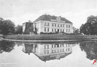 Lata 1910-1912 , Klasycystyczny pałac z l. 1787-90, całkowicie przebudowany w k. XIX w. Budynek wzniesiony na planie prostokąta, dach czterospadowy. Attyka z barokowym szczytem i herbem Potworowskich - Dębno.Skomentuj zdjęcie