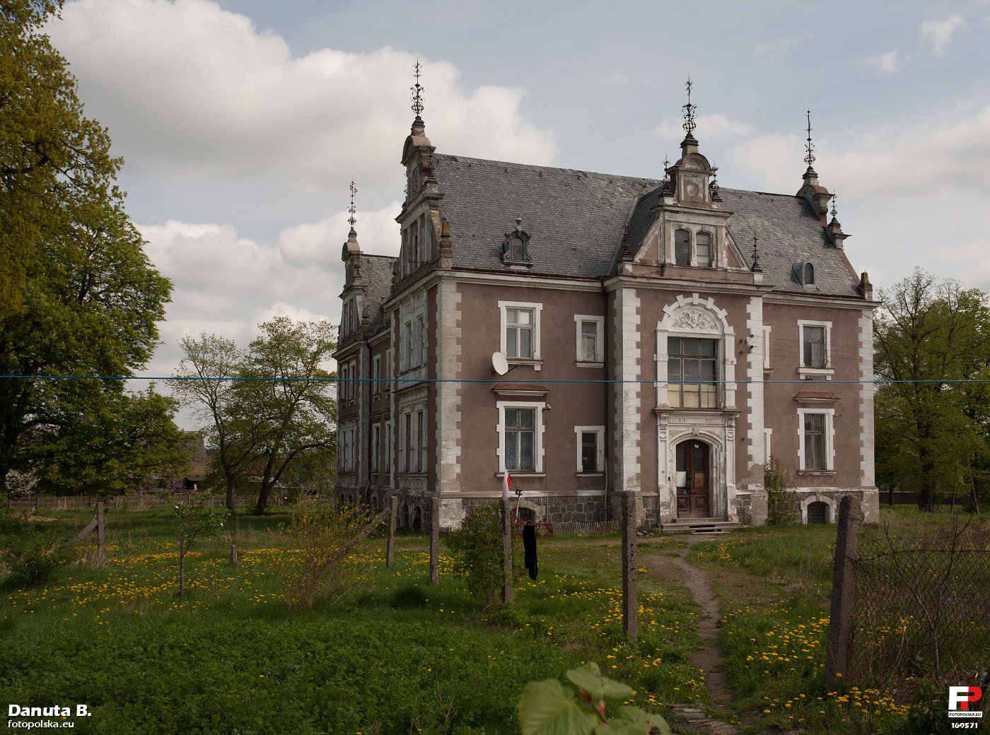 maj 2010 , Pałac wzniesiony został w końcu XIX wieku. Budynek w stylu neorenesansu niderlandzkiego, dziś z resztkami popegeerowskiej farby na elewacjach. Dach pięknie kryty łupkiem.