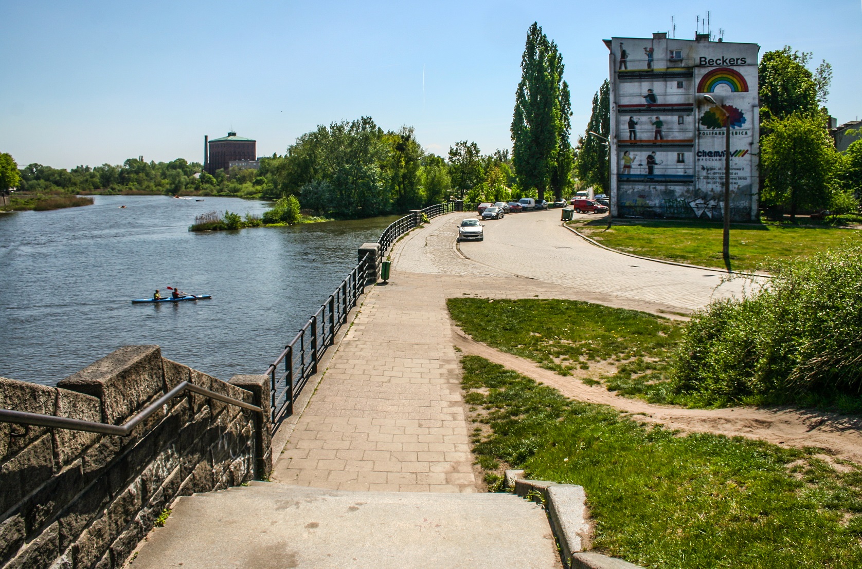 1 maja 2009 , Wybrzeże Słowackiego z miejscem dawnej Przystani. Po lewej, ujście Oławy do Odry i wieża MPWiK. Po prawe,j szczyt budynku nr 5.Skomentuj zdjęcie |