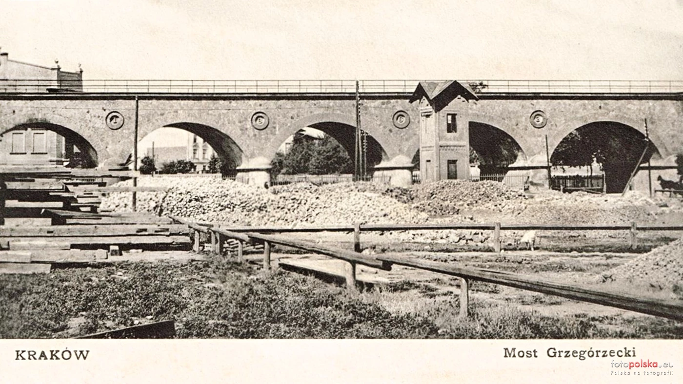 Wiadukt kolejowy (stary) więcej zdjęć (22) Zbudowano: 1861-1863 Zlikwidowano: 2022-01 Dawniej: Most Grzegórzecki, Most kolejowy nad starym korytem Wisły Zabytek: A-820 z 05.09.1989 (wykreślony) Most Grzegórzecki oddano do użytku 23 listopada 1863 r. Został zaprojektowany przez krakowskiego architekta Leona Mikuckiego, a wybudowany przez spółkę Kolej Karola Ludwika. W czasie budowy był to most prowadzący jednotorową linię kolejową nad Starą Wisłą (starorzeczem Wisły). W 1876 r. poszerzono go tak, aby pomieścił dwa tory. W 1880 r. zasypano starorzecze i wówczas obiekt stał się wiaduktem. Długość wiaduktu wraz z murami oporowymi wynosiła 98,00 m, a szerokość ok. 12,00 m. Składał się z pięciu murowanych z cegieł przęseł sklepionych, opartych na murowanych, kamiennych filarach posadowionych na drewnianych palach. Rozpiętości sklepionych przęseł wynosiły ok. 13,30 m, a grubość ceglanych sklepień jest ok. 1,05 m. Na sklepieniach wymurowano kamienne ściany boczne, ozdobione czterema tondami z każdej strony. Pierwotny obiekt wyposażono w kamienny gzyms i balustradę. Przestrzeń między ścianami bocznymi była wypełniona zasypką z odpadów kamiennych i gruzu. Nie wykonano żadnej izolacji zabezpieczającej sklepienie i zasypkę przed przenikaniem wody. W latach 60. XX w. wykonano żelbetową wannę z izolacją bitumiczną. W wannie ułożono nawierzchnię kolejową dla dwóch torów linii kolejowej E30. Wiadukt został rozebrany w związku z odtworzeniem go w nowej formie. ul. Dietla Józefa więcej zdjęć (289) Dawniej: Dietlowska (1879-1940), Dietelstrasse / Dietelring (1940-1945) |
