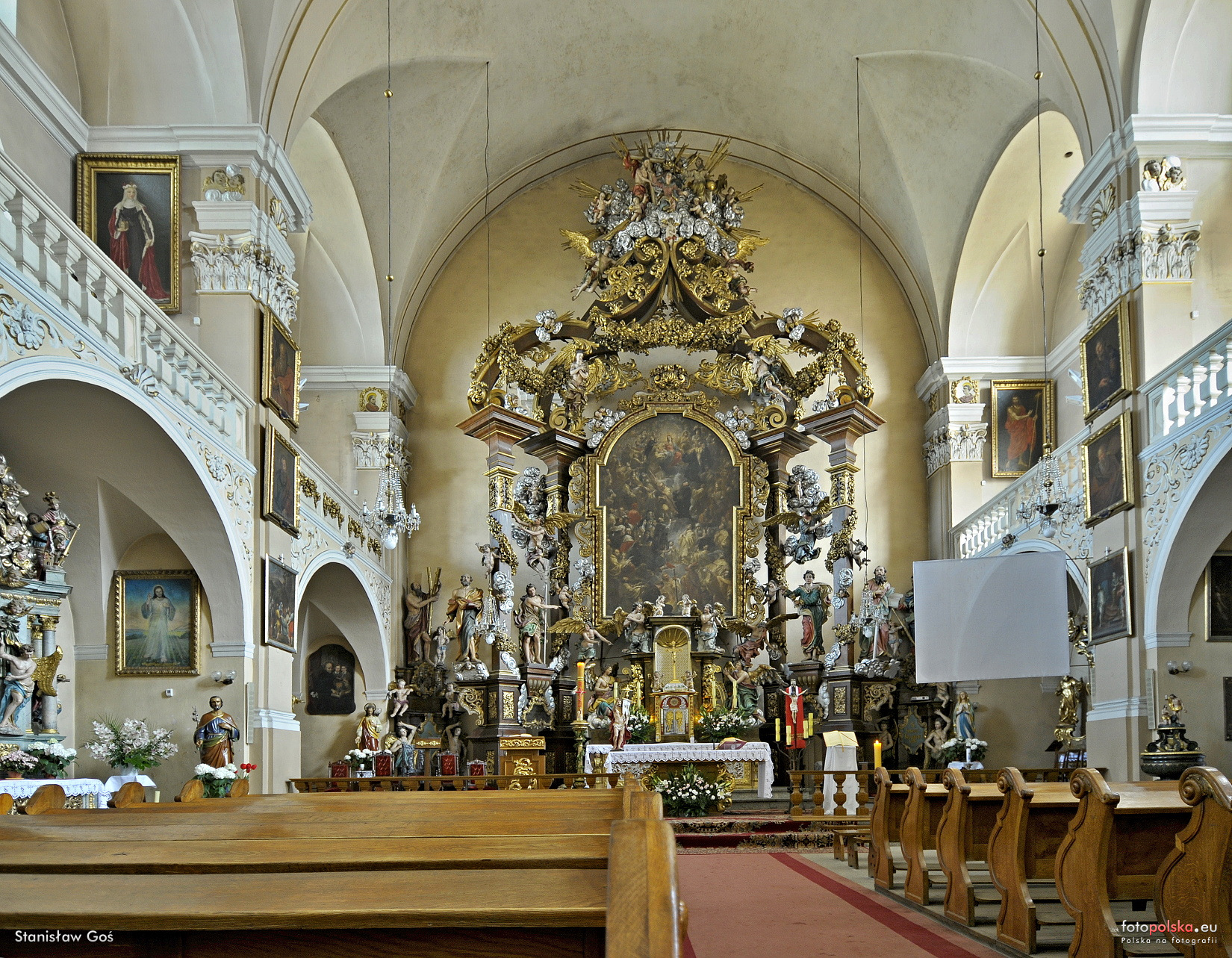 — zachować emporowo-halową dyspozycję wnętrza z kaplicznymi wnękami oraz ścienno-filarową konstrukcję, sklepienia kolebkowe z lunetami, barokowy wystrój i wyposażenie (ambona, rzeźby, obrazy olejne),