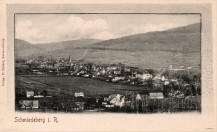 Lata 1900-1905 , Panorama Kowar - widok z Brzeźnika (niem Birkberg). Na uwagę zasługuje m.in. widok budynku koszar przy dzisiejszej ulicy Źródlanej 7-8: Budynek w czasie wykonania fotografii prawdopodobnie należał do fabryki dywanów (niem. Teppich Fabrik). Widokówka z atelier Paula Fischera.Skomentuj zdjęcie |