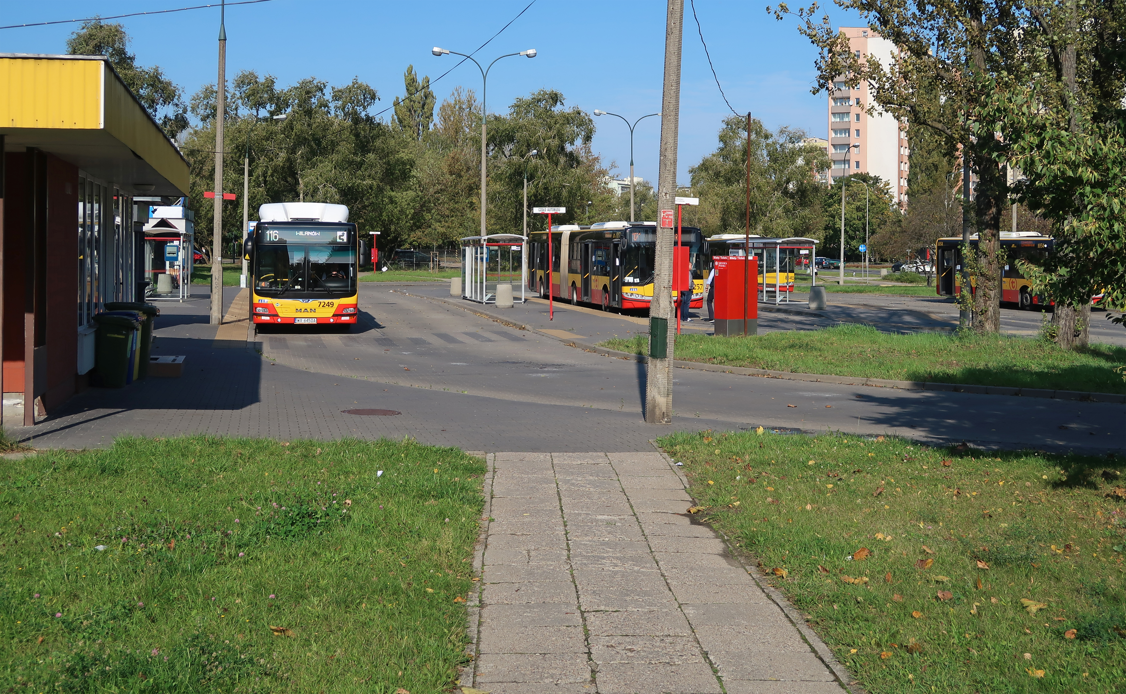 3 października 2020 , Warszawa Bielany. Ulica Josepha Conrada. Pętla autobusowa Chomiczówka. Widok od strony południowo-wschodniej. |