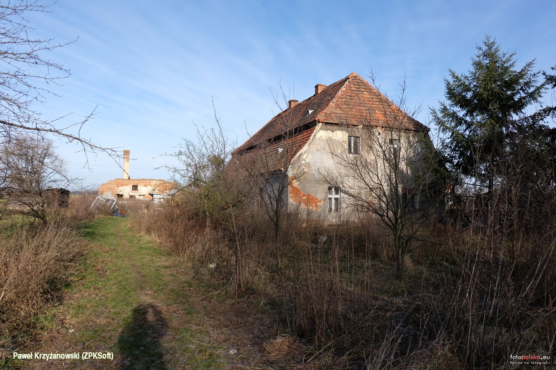27 grudnia 2020 , Gaj Oławski 13, ciekawy stary dom z łamanym dachem, może dawna pastorówka ? Za nim w głębi pozostałości jakiegoś budynku produkcyjnego - gorzelni ? Niestety teren prywatny, następnym razem spróbujemy dotrzeć do niego od drugiej strony.Skomentuj zdjęcie |