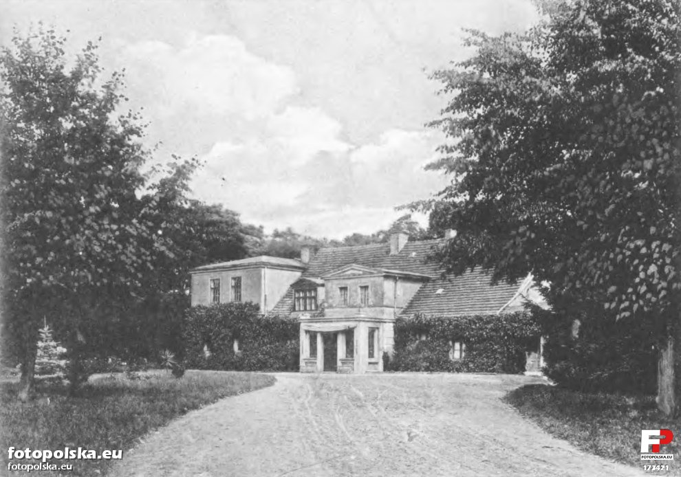 Lata 1908-1910 , Dwór z XVIII w. Na jego murach w l. 1910-12 wzniesiono neoklasyczny pałac wg projektu Stanisława Mieczkowskiego. Fot. Dwory polskie w Wielkiem Księstwie Poznańskiem. Poznań 1912.Skomentuj zdjęcie |