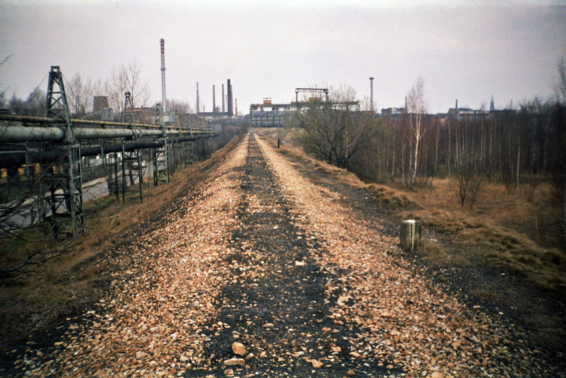 luty 2000 , Nasyp linii wąskotorowej w kierunku stacji Siemianowice Śląskie Wąskotorowe wzdłuż ul. Konopnickiej.Skomentuj zdjęcie
