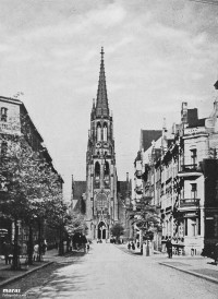 Kościół Niepokalanego Poczęcia Najświętszej Maryi Panny więcej zdjęć (127) Architekt: Alexis Langer Atrakcja turystyczna Zbudowano: 1862-1870 Zabytek: A/266/09 z 8 VII 2009 Kościół Niepokalanego Poczęcia NMP zbudowany został w latach 1862-1870 w stylu neogotyckim przez budowniczego Aleksego Langera. Secesyjne witraże kaplic wykonano według projektów A. Bunscha. pl. Szramka Emila, ks. więcej zdjęć (387) ul. Mariacka więcej zdjęć (744) Dawniej: Holtze Strasse Ulica Mariacka została zabudowana w drugiej połowie XIX wieku według planu Nepilly'ego z 1875 (blok zamknięty ulic na wschód od Rynku). W 1876 ulicy nadano nazwę Richard Holtzestraße na cześć, obchodzącego wtedy dwudziestopięciolecie pracy jako lekarz, Richarda Holtzego − przewodniczącego ówczesnej Rady Miejskiej Katowic. Nazwa ta obowiązywała do 1922, oraz w latach niemieckiej okupacji Polski (1939−1945). Pod koniec XIX wieku przy ulicy działała restauracja Kasulke[7]. 27 stycznia 1901 w domu przy Holtzestraße 18 urodził się Willy Fritsch − jedna z najważniejszych gwiazd dawnego kina niemieckiego. Przed I wojną światową pod numerem 4−6 założono hotel Savoy; istniał do 1939; w okresie międzywojennym należał do A. Czaplickiego. W restauracji hotelu dnia 20 czerwca 1922 na uroczystym śniadaniu spotkali się Wojciech Korfanty i Józef Rymer ze Stanisławem Szeptyckim. W dwudziestoleciu międzywojennycm przy ulicy swoją siedzibę miały: Bank Śląski - Banque de Silésie SA (oddział, pod numerem 24), hotel Europejski (wzniesiony w latach 1930−1931 przy ul. Mariackiej 15), restauracja Kessel Juliusza Grundmanna (pod numerem 27), restauracja Józefa Adamaszka (pod numerem 24), cukiernia Astoria Walentego Rybki (ul. Mariacka 1), oddział towarzystwa ubezpieczeniowego Kotwica (pod numerem 3). Około 1926 pod numerem 2 działalność prowadził Bank Dewizowy, pod numerem 12 − Górnośląski Bank Związkowy, pod numerem 17 − Ogólna Spółka Rewizyjna i Powiernicza Vera. Przed II wojną światową przy ul. Mariackiej 5 założono Dom Techniczno-Handlowy Industria Ludwika Żmigroda. W latach 1925−1926 pod numerem 13 znajdował się konsulat Brazylii i redakcja oddziału Ilustrowanego Kuriera Codziennego, pod numerem 14 − biuro "Polskiego Kolejarza Górnośląskiego". Na rogu ul. Mariackiej, obok Astorii, zlokalizowany był początkowy przystanek linii atobusowej Katowice −Sosnowiec, uruchomionej we wrześniu 1925. W dwudziestoleciu międzywojennym ulica Mariacka znana była z dużej ilości pracujących tu prostytutek, w szczególności po zlokalizowaniu na rogu z ul. Stanisława Hotelu Europejskiego, gdzie często wyczekiwały na klientów. Kwartał ulic: św. Jana, Dworcowa, Mariacka, Andrzeja Mielęckiego, Stanisława i Starowiejska w zamyśle władz Katowic ma się stać tzw. "małym rynkiem". Pierwszym krokiem była organizacja konkursu na opracowanie koncepcji programowo-przestrzennej, urbanistyczno-architektonicznej zagospodarowania ulic św. Jana, Dworcowej, Mariackiej oraz Andrzeja Mielęckiego, Stanisława i Starowiejskiej w 2005, który wygrało konsorcjum Autorska Pracownia Architektury Kuryłowicz & Associates i Biuro Autorskie "A i R" Jurkowscy Architekci, min. za "dwustronne obsadzenie drzewami ulicy Mariackiej odtwarza jej pierwotny charakter alei ulicznej zamkniętej widokiem kościoła NMP". Remont ulicy Mariackiej przeprowadzono w 2008; koszt przebudowy wyniósł około 12 milionów złotych. W dniach 4−26 lipca 2009 na ulicy Mariackiej odbył się cykl imprez Letnie Granie na Mariackiej. 22 września 2009[21] rozpoczął działalność portal internetowy, poświęcony ulicy − Mariacka.eu. Znajdujące się na tej ulicy nowoczesne ławki i stół Elipse, projektu Macieja Rutkowskiego, zostały nagrodzone w konkursie Śląska Rzecz (2009). Dnia 6 września 2010 odbyła się impreza Mariacka.OPEN[22], w dniach 8−17 września 2010 na deptaku znajdował się "Jarmark Katowicki", promujący miasto i sam deptak; 18 i 19 września 2010 na ulicy Mariackiej odbyły się koncerty bluesowe, a 21 września 2010 otwaro wystawę "Katowickie Synagogi", prezentująca materiały archiwalne dotyczące katowickiej synagogi, pochodzące z archiwum Urzędu Miasta Katowice. Od 2009 na ulicy Mariackiej cyklicznie odbywa się szereg imprez plenerowych i koncertów oraz wydarzeń kulturalnych. Pod koniec 2010 kamienicę na rogu ul. Francuskiej i ul. Mariackiej wyburzono. 27 marca 2011 na ul. Mariackiej odbył się koncert "Solidarni z Białorusią", zorganizowany przez Stowarzyszenie Inicjatywa Wolna Białoruś. Pod koniec kwietnia 2011 na deptaku zasadzono trzydzieści ozdobnych drzewek wiśni piłkowanej rozpoczęto także naprawę odcinka od skrzyżowania z ul. Francuską do Kościoła Mariackiego (koszt naprawy szacowany jest na milion złotych, trwała do czerwca 2011; w 2010 ta część deptaku została uszkodzona przez betoniarkę) |