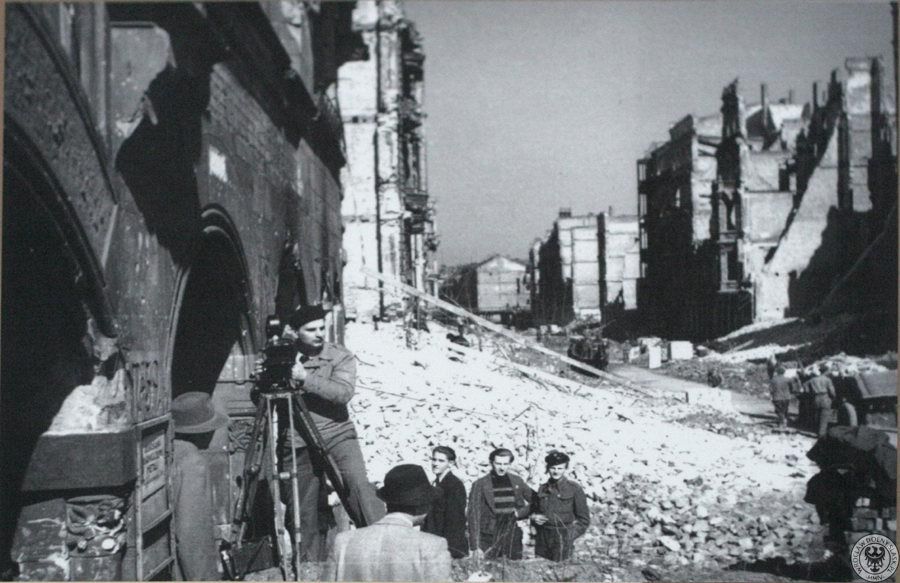 Lata 1945-1948 , Studenci odgruzowujący miasto filmowani przez ekipę Polskiej Kroniki Filmowej.Skomentuj zdjęcie |