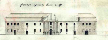 1811 , Kościół i szpital św. Ducha w Grodnie przy ul. Wileńskiej (Dominikańskiej). Rysunek fasady z inwentaryzacji, którą wykonał Karol Bogemihl.Skomentuj zdjęcie |