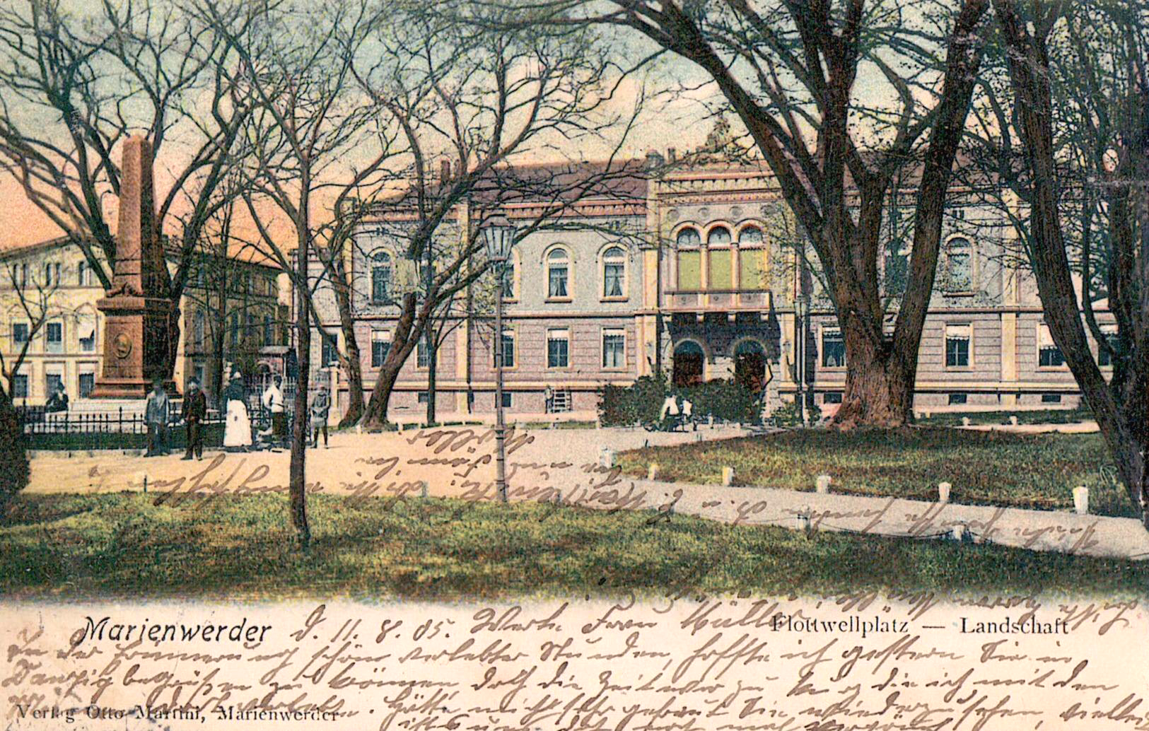 Lata 1903-1905 , Skwer na placu Plebiscytowym z widokiem na gmach banku, późniejszą siedzibę Sądu Rejonowego.Skomentuj zdjęcie |