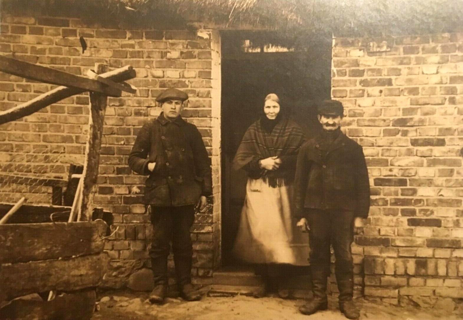 Lata 1918-1920 , Wejście do budynku (krytego słomą) w Narokowie, wtedy przysiółku wsi Piskorzyna .Skomentuj zdjęcie