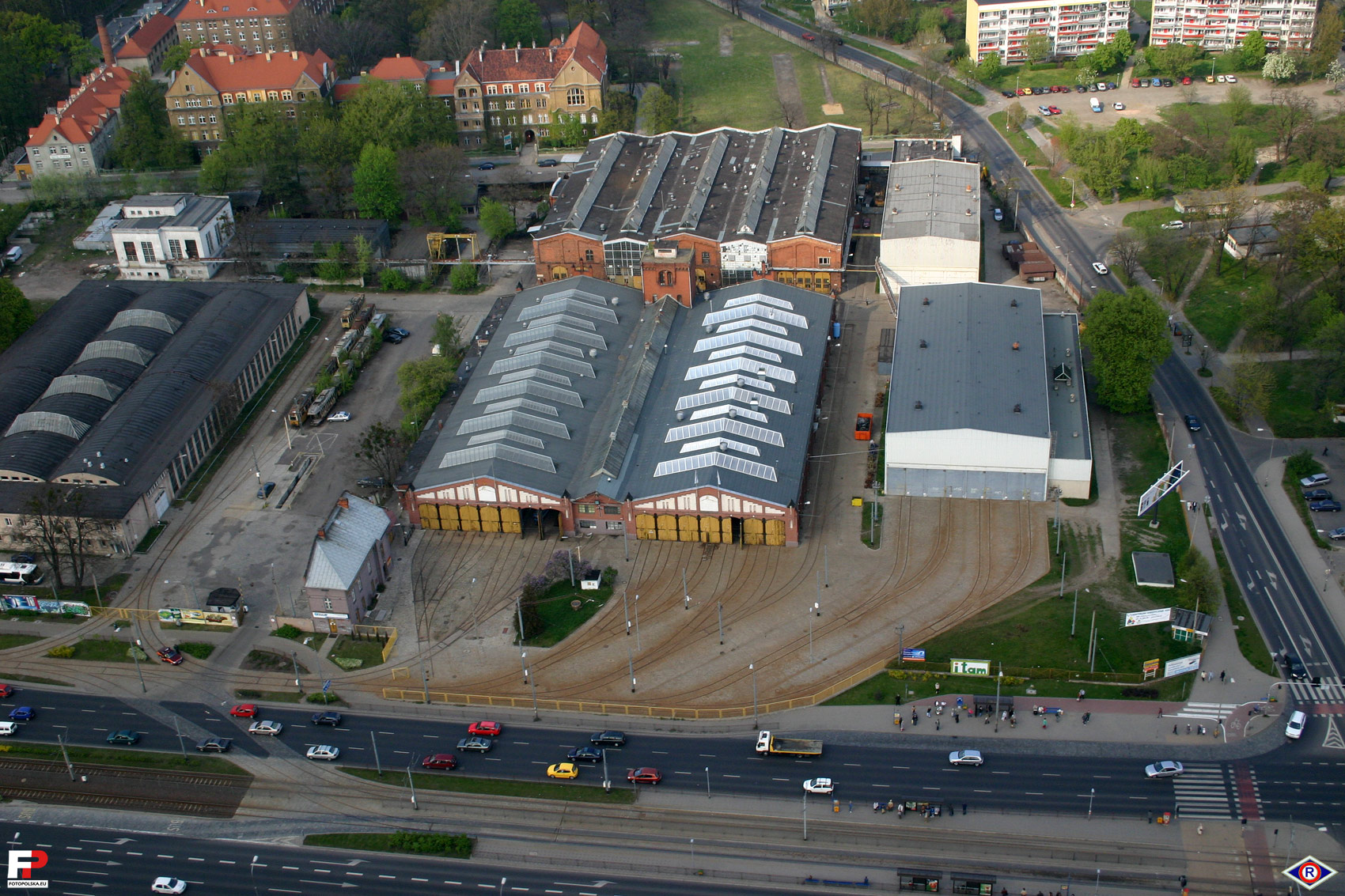 29 kwietnia 2005 , Dawna zajezdnia tramwajowa przy ulicy Legnickiej. Obecnie większość tych hal zajmuje firma Protram remontująca i produkująca tramwaje. Przed wojną zajezdnia miała jeszcze działkę na północ od ulicy Wejherowskiej czyli na prawo od tego okazałego budynku widocznego za zajezdnią.Skomentuj zdjęcie