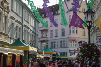 0 pobrań 271 odsłon 5.66 średnia ocen Poprzednie i następne zdjęcia Grunberger Obiekty widoczne na zdjęciu Winobranie więcej zdjęć (95) Atrakcja turystyczna W 1852 r Święto Winobrania stało się oficjalnym świętem ,które sprzyjało zabawie i propagowaniu Zielonej Góry. Termin ustalała rada miasta , ponieważ zbiory winogron zaczynały się w różnych okresach. Korowód winobraniowy w 1900 r był pierwszym w dziejach miasta tak dobrze udokumentowanym pochodem na fotografiach. W/g tradycji ustnej pierwsze winnice powstały w rejonie Zielonej Góry około 1150 r. Pierwsze pisemne wzmianki pochodzą z 1314 r. Założyli je flamandzcy osadnicy ,którzy przyjechali do Zielonej Góry przywożąc ze sobą sadzonki oraz umiejętności zakładania i prowadzenia winnic. Mimo, że chociaż obecnie nie ma już tak dużo plantacji winogron i wytwórni , święto winobrania obchodzone jest nadal hucznie i wesoło. Wydarzenia więcej zdjęć (3) ul. Żeromskiego Stefana więcej zdjęć (214) Dawniej: Niedertorstrasse |