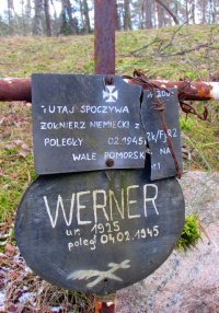 20 marca 2021 , Mogiła niemieckiego żołnierza, który poległ 04.02.1945 roku w trakcie walk na Odcinku Dro.S. w bezpośrednim sąsiedztwie schronu bojowego Dro.S.1.Skomentuj zdjęcie |