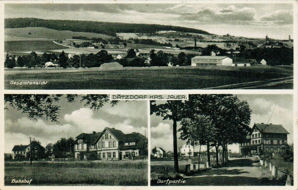 1936 , Widok na Dzierzków, dól, na lewo budynek dworca w sąsiednim Borowie. |