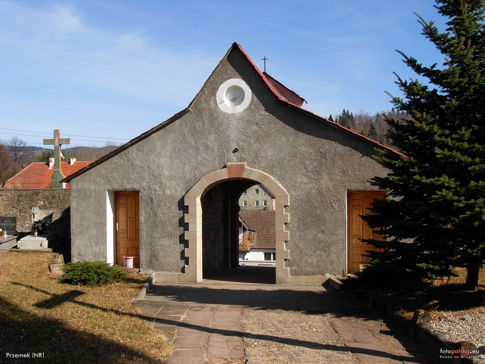 Polska woj. dolnośląskie powiat kłodzki Dzikowiec Kościół św. Marcina Brama kościelna