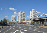 27 kwietnia 2021 , Wieżowce po remoncie elewacji - widok od strony Ronda Reagana.Skomentuj zdjęcie