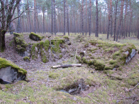 Jednosektorowy schron bojowy (G.Br.4) więcej zdjęć (13) Atrakcja turystyczna Zbudowano: 1935 - 1936 Pozycja Pomorska - Odcinek G.Br. (Gross Born) więcej zdjęć (3) Atrakcja turystyczna Zbudowano: 1935 - 1936 Odcinek znajduje się na zachód od Bornego Sulinowa między jeziorem Pile a jeziorem Długie. Na długości ok. 3 km wybudowano 12 żelbetonowych schronów bojowych. Wszystkie w tej samej klasie odporności C oraz jedno stanowisko obrony okrężnej typu Ringstand 58c. Z pozostałości schronów widać, iż zastosowano w nich odcinkowe zgrubienia ścian w miejscach gdzie wewnątrz schronów występują nisze, które zaczęto stosować w 1936 roku. Takie same zgrubienia występują także na sąsiadującym od południa odcinku Pil. (Pilowmuhle), który wybudowany został w tymże roku. Występują tu dwa rodzaje schronów: pierwszy to jednoizbowy schron bojowy bez wyjścia awaryjnego, drugi to jednosektorowy schron bojowy z pomieszczeniem dla drużyny piechoty. Poszczególne schrony mogą się nieznacznie różnić np. rozmieszczeniem wyposażenia socjalnego (piecyków, wentylatorów), rodzajem niektórych pancerzy (wewnętrznej obrony wejścia), czy w schronach jednoizbowych umieszczeniem wejścia (na ścianie tylnej lub bocznej). Linię umocnień wykonanych w 1944 roku znacznie wysunięto przed schrony bojowe, które przez to nie zostały skomunikowane transzejami. Obiekty wysadzone w powietrze po II wojnie światowej. |