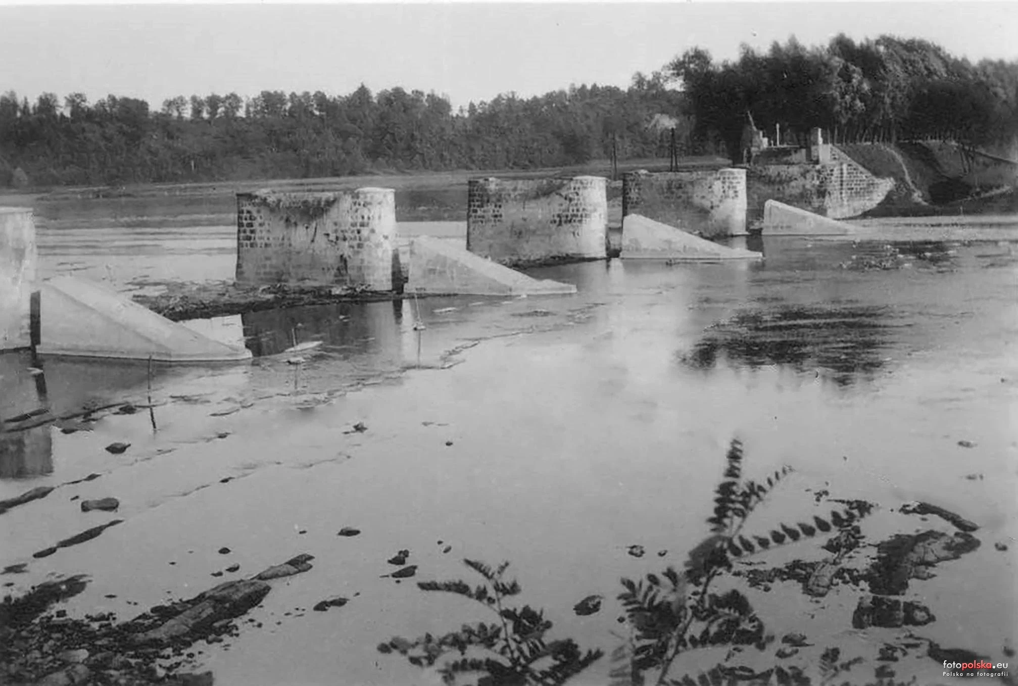 1939 , Postołów - Zniszczony most na Sanie.Skomentuj zdjęcie