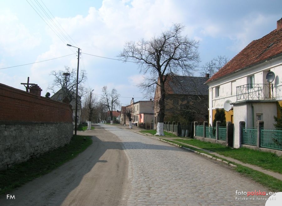 , Kilianów, widok na budynki stojące przy głównej drodze we wsi.