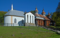 2 pobrania 471 odsłon 0 średnia ocen Poprzednie i następne zdjęcia marek45 Obiekty widoczne na zdjęciu Cerkiew św. Paraskewy więcej zdjęć (23) Zbudowano: 1830 Zabytek: A-46 z 18.11.1982 Wzniesiona w 1830 r cerkiew przetrwała zawieruchę II wojny światowej. Po wysiedleniu ludności ukraińskiej służyła jako kościół rzymskokatolicki. Cerkiew jest bliźniaczo podobna do świątyni w Brzeżawie. Budowla orientowana, konstrukcji zrębowej, oszalowana. Dolne belki zrębu osłania fartuch z blachy. Bryła pozornie dwudzielna, nawa i prezbiterium tej samej wysokości, babiniec węższy. Do zamkniętego trójbocznie prezbiterium przylega od północy zakrystia ze skarbczykiem na piętrze, od południa zaś otwarte do prezbiterium pomieszczenie - reminiscencja dawnego pastoforium, które w przeciwieństwie do zakrystii otwiera się do wnętrza cerkwi. Jest to element niezwykle rzadki w budownictwie XiX w. Do nawy prowadzi dodatkowe wejście od południa. Babiniec jest podzielony na dwie kondygnacje daszkiem okapowym. Dach jednokalenicowy o trzech baniach z latarniami na ośmiobocznych bębnach. Wewnątrz pozorne sklepienie beczkowe, wsparte na profilowanych filarach, podobnie jak polichromowany chór. Babiniec i prezbiterium dzielą od nawy obszerne, półokrągłe łuki. Ściany i sklepienie pokryte barwną, niezwykle bogatą, choć przyćmioną patyną czasu polichromią. W cerkwi zachowało się sporo oryginalnych elementów wyposażenia. Źródło: Magdalena i Artur Michniewscy, Marta Duda "Cerkwie drewniane Karpat. Polska i Słowacja" Wyd. Rewasz 2003 Kaplica grobowa rodziny Zarębów więcej zdjęć (11) |