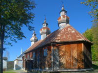 2 pobrania 441 odsłon 6 średnia ocen Poprzednie i następne zdjęcia marek45 Obiekty widoczne na zdjęciu Cerkiew św. Paraskewy więcej zdjęć (23) Zbudowano: 1830 Zabytek: A-46 z 18.11.1982 Wzniesiona w 1830 r cerkiew przetrwała zawieruchę II wojny światowej. Po wysiedleniu ludności ukraińskiej służyła jako kościół rzymskokatolicki. Cerkiew jest bliźniaczo podobna do świątyni w Brzeżawie. Budowla orientowana, konstrukcji zrębowej, oszalowana. Dolne belki zrębu osłania fartuch z blachy. Bryła pozornie dwudzielna, nawa i prezbiterium tej samej wysokości, babiniec węższy. Do zamkniętego trójbocznie prezbiterium przylega od północy zakrystia ze skarbczykiem na piętrze, od południa zaś otwarte do prezbiterium pomieszczenie - reminiscencja dawnego pastoforium, które w przeciwieństwie do zakrystii otwiera się do wnętrza cerkwi. Jest to element niezwykle rzadki w budownictwie XiX w. Do nawy prowadzi dodatkowe wejście od południa. Babiniec jest podzielony na dwie kondygnacje daszkiem okapowym. Dach jednokalenicowy o trzech baniach z latarniami na ośmiobocznych bębnach. Wewnątrz pozorne sklepienie beczkowe, wsparte na profilowanych filarach, podobnie jak polichromowany chór. Babiniec i prezbiterium dzielą od nawy obszerne, półokrągłe łuki. Ściany i sklepienie pokryte barwną, niezwykle bogatą, choć przyćmioną patyną czasu polichromią. W cerkwi zachowało się sporo oryginalnych elementów wyposażenia. Źródło: Magdalena i Artur Michniewscy, Marta Duda "Cerkwie drewniane Karpat. Polska i Słowacja" Wyd. Rewasz 2003 |
