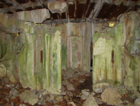 14 maja 2021 , Wnętrze ruiny jednosektorowego schronu bojowego Br.10 - przejście z izby pogotowia do przedsionka.Skomentuj zdjęcie