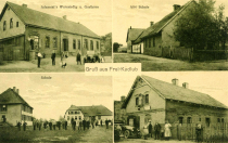 Lata 1934-1938 , Na widokówce u góry: sklep wielobranżowy i gospoda pana Adamskiego oraz stara szkoła, na dole: nowa szkoła i ....?.... .Skomentuj zdjęcie |