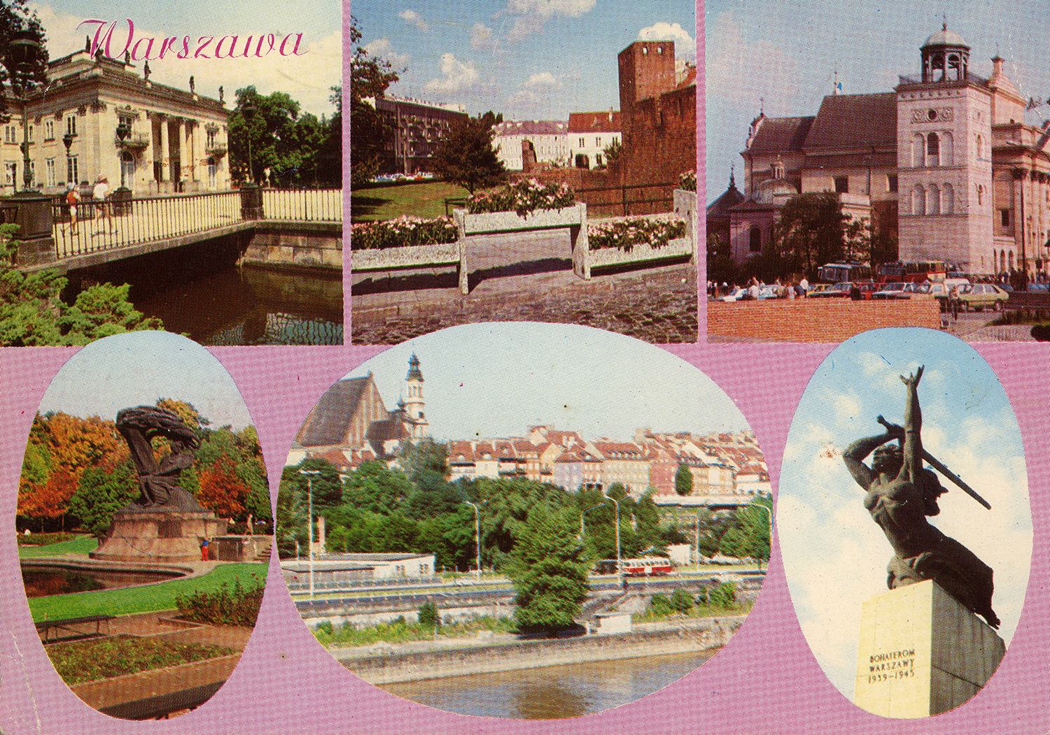 Lata 1985-1990 , Warszawa Pałac Na Wyspie. Fragment murów staromiejskich. Kościół Św. Anny-dzwonnica. Pomnik Fryderyka Chopina w Parku Łazienkowskim. Panorama Starego Miasta. Pomnik Bohaterów Warszawy. Widokówka wydana przez Krajową Agencje Wydawnicza.