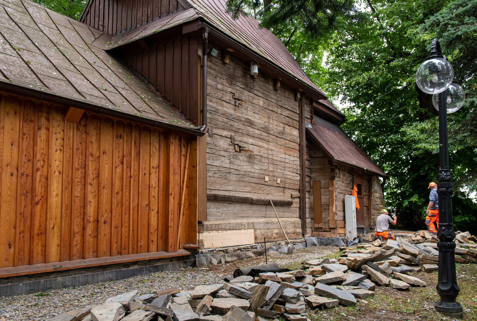 Kościół Narodzenia Najświętszej Marii Panny więcej zdjęć (15) Zbudowano: XVII w Kościół p.w. Narodzenia NPM z XVII w. Rozbudowany w XVIII w. Według tradycji wzniesiono go na miejscu pustelni Świętego Justa. Odpust 8.09. każdego roku. Remontowany w 1930 r. – pokrycie dachu blachą. Budowa i wyposażenie. Kościół drewniany, jednonawowy konstrukcji zrębowej. Nie orientowany. Prezbiterium mniejsze od nawy, zamknięte trójbocznie z boczną zakrystią. Duża kruchta konstrukcji słupowo – ramowej od frontu. Zwieńczona wieżyczką na sygnaturkę z barokowym hełmem blaszanym z latarnią. Na szczycie nawy gołębnik. Dach jednokalenicowy, kryty blachą. Wewnątrz stropy płaskie. Ołtarz główny barokowy z 2 poł. XVII w. z obrazami MB Częstochowskiej – Juściańskiej z XVI w. i ludowo – barokowym Świętego Justa z 1677 r. z postaciami rodziny fundatorów w strojach szlacheckich. Współczesny ołtarz boczny. Niewielka ambona z XVIII w. Chrzcielnica kamienna późnogotycka z XVIII w. kosciolydrewniane.pl |