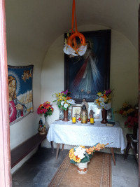 3 lipca 2021 , Wnętrze kapliczki domkowej na skrzyżowaniu dróg w Jawiszowie.Skomentuj zdjęcie |