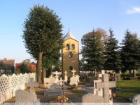 , Nieczynna dzwonnica na cmentarzu w Biskupicach Oławskich.