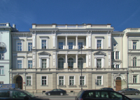 Niemiecki Instytut Historyczny więcej zdjęć (14) Zbudowano: 1877-78 Dawniej: Pałac Karnickich Pałac Karnickich - mieszczący się w Alejach Ujazdowskich 39 neorenesansowy pałac zaprojektowany przez Józefa Hussa dla rodziny rosyjskiego senatora, Jana Karnickiego. Wzniesiony został w latach 1877-78, ma dwa piętra, zwieńczony jest attyką. W czasie II wojny światowej i powstania warszawskiego budynek nie uległ żadnym istotnym zmianom lub uszkodzeniom. Obecnie mieści siedzibę Niemieckiego Instytutu Historycznego. ul. Aleje Ujazdowskie więcej zdjęć (4527) Dawniej: Lindenallee, Siegesstrasse, Aleja Stalina, Aleja Belwederska W latach 1724-1731 z polecenia króla Augusta II, wytyczona została tzw. Droga Kalwaryjska prowadząca od dzisiejszego Placu Trzech Krzyży do Grobu Chrystusa niedaleko Zamku Ujazdowskiego, stając się zaczątkiem dzisiejszych Alej. Było to założenie ostentacyjnie dewocyjne, wzdłuż drogi krzyżowej wzniesiono 28 kaplic. Religijna wymowa tego szlaku uległa stopniowemu zatarciu, tak, że w 1766 był już częścią Traktu Królewskiego jako Aleja Belwederska, prowadząca do Belwederu. W roku 1827 powstała Dolina Szwajcarska, szybko stając się popularnym miejscem spotkań i imprez masowych. W 1857 przy ulicy zapalono pierwsze latarnie gazowe, a w 1879 rozpoczęto kanalizowanie. Druga połowa XIX wieku to początek zabudowy willowej i pałacowej w Alejach - powstały liczne siedziby arystokracji i przemysłowców. Po I wojnie światowej znalazły tu siedziby ambasady i poselstwa. W czasie II wojny światowej w ramach planu Pabsta umiejscowiono tu dzielnicę niemiecką, a Aleje przemianowane zostały na aleję Lipową (Lindenallee), a później na aleję Zwycięstwa (Siegenallee). W 1944 zabudowa ulicy uległa zniszczeniom w czasie powstania warszawskiego i odbudowa trwała aż do 1955. W okresie stalinowskim przemianowana na Aleję Stalina i starą nazwę przywrócono dopiero po śmierci Józefa Stalina. Odbudowa Alej jednak nie była dokładna - powstało osiedle Latawiec i wiele budynków w rejonie ulicy Koszykowej i Placu na Rozdrożu przestało istnieć. Także przebicie Trasy Łazienkowskiej zmieniło wygląd ulicy - miejsce po dawnym dworze książąt mazowieckich na Jazdowie znalazło się w osi jezdni i przestało istnieć. Wikipedia |