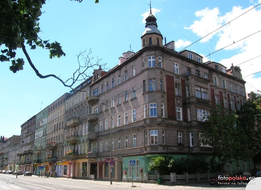2 pobrania 1043 odsłony 5.33 średnia ocen Poprzednie i następne zdjęcia FM Obiekty widoczne na zdjęciu ul. Trzebnicka więcej zdjęć (566) Dawniej: Trebnitzer Strasse Ulica Trzebnicka we Wrocławiu – jedna z arterii wylotowych, prowadzących od Starego Miasta na północ, w kierunku Trzebnicy. Zaczyna się na placu św. Macieja, a kończy na mostach Trzebnickich przez Starą Odrę. Przebiega przez osiedle Kleczków (część dawnego Przedmieścia Odrzańskiego). Przedłużeniem ulicy Trzebnickiej za mostami Trzebnickimi jest ul. Żmigrodzka, przecinająca Karłowice i Poświętne. Długość ulicy wynosi 1,1 km; w połowie długości, przy pl. Powstańców Wielkopolskich, przecina ją wiadukt kolejowy. Południowy odcinek jezdni ulicy Trzebnickiej (do pl. Powstańców Wielkopolskich) jest stosunkowo wąski (po jednym pasie ruchu w obu kierunkach, bez tramwaju); odcinek północny jest szerszy i mieści także tory tramwajowe. W przeszłości część dzisiejszej ulicy Trzebnickiej (od pl. Powstańców Wielkopolskich do mostów Trzebnickich) stanowiła fragment Szosy Trzebnickiej (niem. Trebnitzer Chausee). Dawna rogatka miejska (Trebnitzer Barriere) zlokalizowana była w pobliżu skrzyżowania z ul. Ołbińską. Po roku 1868, w związku z budową linii kolejowej Prawego Brzegu Odry i korekcie sieci ulicznej (związanej także z wytyczonym w 1873 na dawnym Polu Maciejowym – Mathiasfeld – placem św. Macieja) przebieg nowo utworzonej Trebnitzerstraße przybrał współczesny kształt ulicy Trzebnickiej. Wybudowane wzdłuż ulicy budynki w większości powstały przed rokiem 1910 i podczas oblężenia Festung Breslau w 1945 prawie wszystkie przetrwały w stopniu, pozwalającym ich odbudowę; jest to jedna z nielicznych ulic miasta, których stuletnia zabudowa zachowała się w tak dużym stopniu do XXI wieku. Prócz kamienic mieszkalnych – w większości 5- i 6-kondygnacyjnych, często ze zlokalizowanymi na parterze lub w suterenie sklepami i małymi zakładami usługowymi – wzdłuż ulicy Trzebnickiej wybudowano m.in. w latach 1894-1895 gmach przytułku Fundacji Claasseena (wg projektu Richarda Plüddemanna, pod numerem 25-27, pomiędzy ul. św. Wincentego a Ołbińską, dziś szpital MSW), szkołę (1905-1908, projekt R. Plüddemanna i Ch. Cabanisa, pod numerem 42-44, przy skrzyżowaniu z ul. Dębickiego i z ul. Kleczkowską, dziś Kolegium Nauczycielskie), a także gazownię miejską (nr 35, projekt i budowa – rok 1881 i następne, dziś Zakład Energetyczny) i jej budynek administracyjny (nr 33, rok 1938, dziś urząd skarbowy dzielnicy Psie Pole). Źródło: Autorzy: Licencja: CC-BY-SA 3.0 |