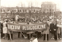 1 maja 1964 , Na stadionie miejskim. W tle budynki przy ul. Sobczyńskiego.Skomentuj zdjęcie