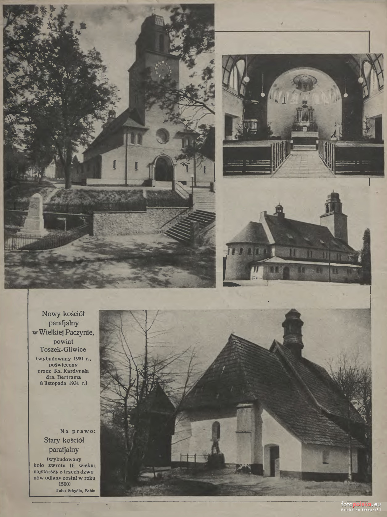 1933 , Stary i nowy kościół w Paczynie.Skomentuj zdjęcie